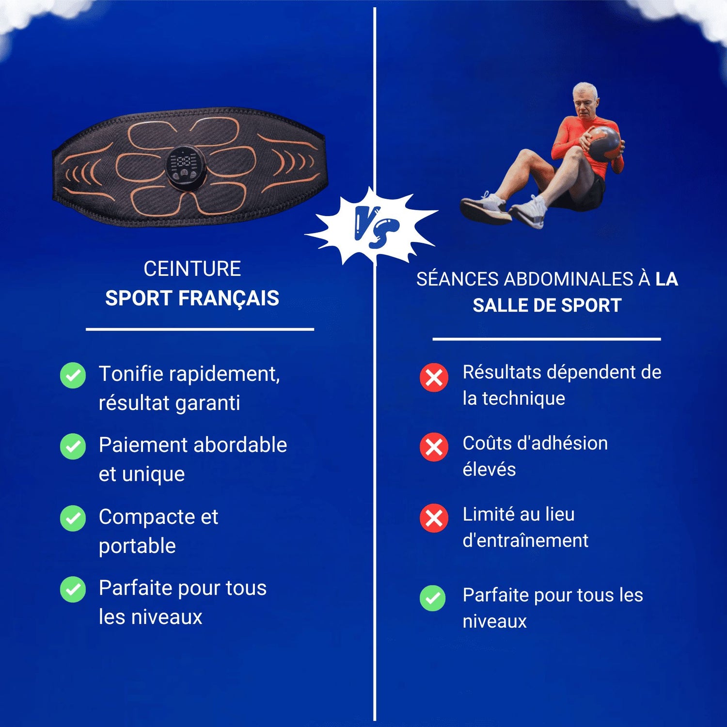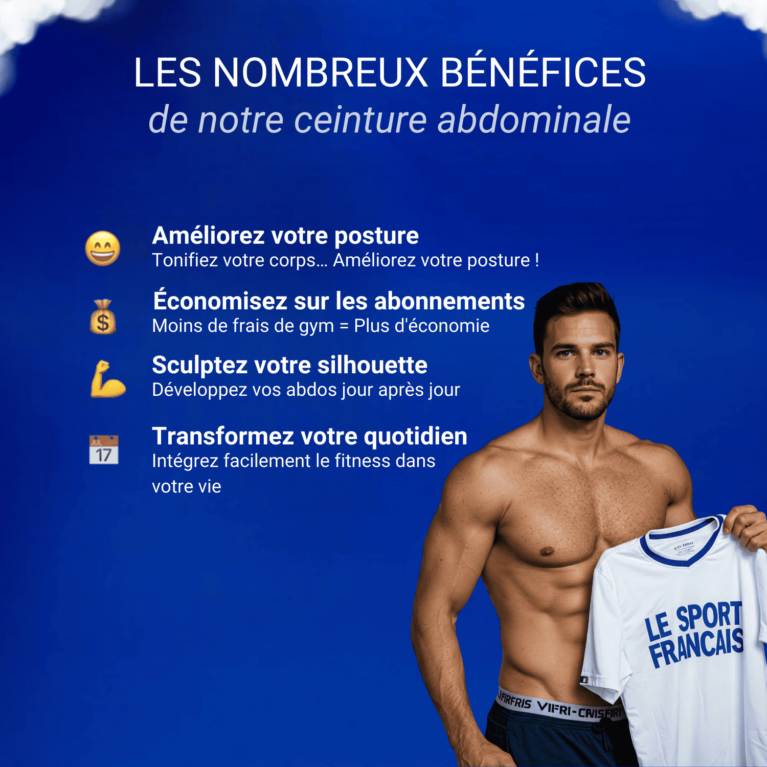 Pour sculpter votre ventre plat et obtenir des abdominaux musclés, combinez efficacement vos exercices de sport avec notre ceinture abdominale stimulante du Sport Français, ciblant précisément les différents muscles abdominaux. Un renforcement des abdominaux réussi inclut des exercices variés comme les crunches, les relevés de jambes et la Planche (exercice pour le gainage). Intégrer une activité physique régulière, tel que le cardio, favorise la réduction du gras de la ceinture abdominale, révélant ainsi des abdominaux musclés plus visibles et contribuant à un ventre plat. Pour optimiser vos résultats et amplifier l'efficacité de votre entraînement, découvrez notre ceinture abdominale du Sport Français. Bien que le sport pour abdos doive être progressif et constant pour développer des abdominaux musclés et un ventre plat, notre ceinture électrostimulation stimulante, conçue pour une stimulation musculaire ciblée et profonde, se révèle un allié précieux. Utilisée en complément de vos exercices de sport, ou même pendant le sport pour un soutien et une activation musculaire accrue, notre ceinture abdominale du Sport Français peut intensifier le travail musculaire et accélérer la définition de vos abdominaux musclés pour un ventre plat plus rapidement perceptible. Pour une ceinture femme abdominale, les mêmes principes de renforcement des abdominaux et d'activité physique s'appliquent pour obtenir un ventre plat, et notre gamme propose également des modèles spécialement adaptés à la morphologie féminine. N'attendez plus, explorez notre sélection sur Le Sport Français pour trouver la ceinture abdominale idéale qui accompagnera votre quête d'un ventre plat et d'abdominaux musclés.