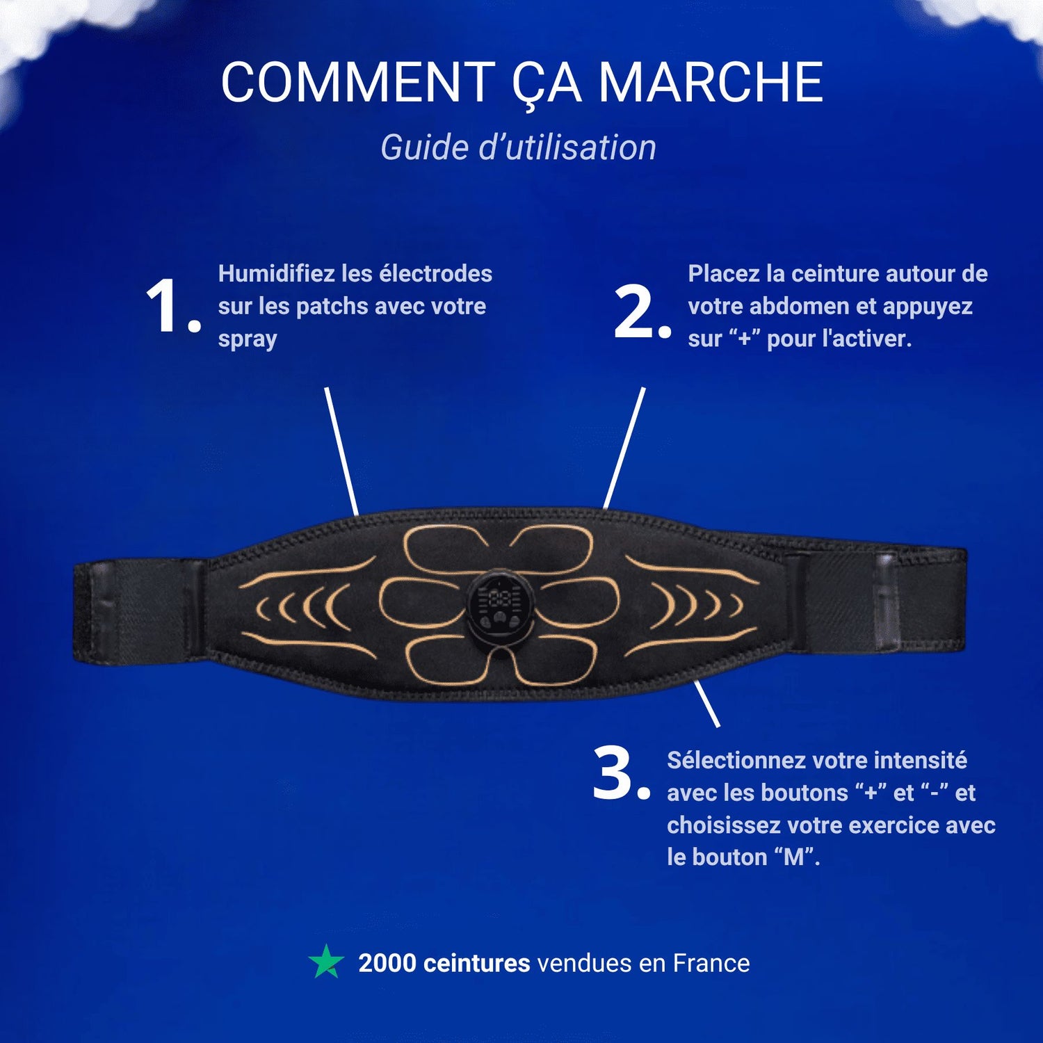 Utilisez la ceinture 20 à 30 minutes par jour, 5 fois par semaine, pour obtenir de meilleurs résultats. La ceinture Le Sport Français, fabriquée conformément aux normes médicales, utilise la technologie d'électrostimulation musculaire pour imiter un entraînement régulier afin de renforcer, raffermir et tonifier vos muscles. La ceinture abdominale renforce les 4 muscles abdominaux : le transverse (le muscle le plus profond et le plus difficile à travailler), le grand droit (il est en superficie, ce sont les fameuses tablettes de chocolat) et les muscles obliques internes et externes.